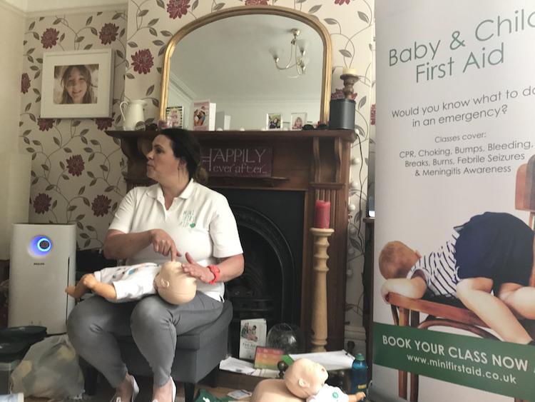 A lovely trainer – Paula from Mini First Aid Lancashire – came to my house. I invited four blogger friends to join me, and try out the workshop. We were horribly chatty and probably asked FAR too many questions, but Paula was brilliant. We worked methodically through a series of topics, from CPR and choking to burns and broken bones.