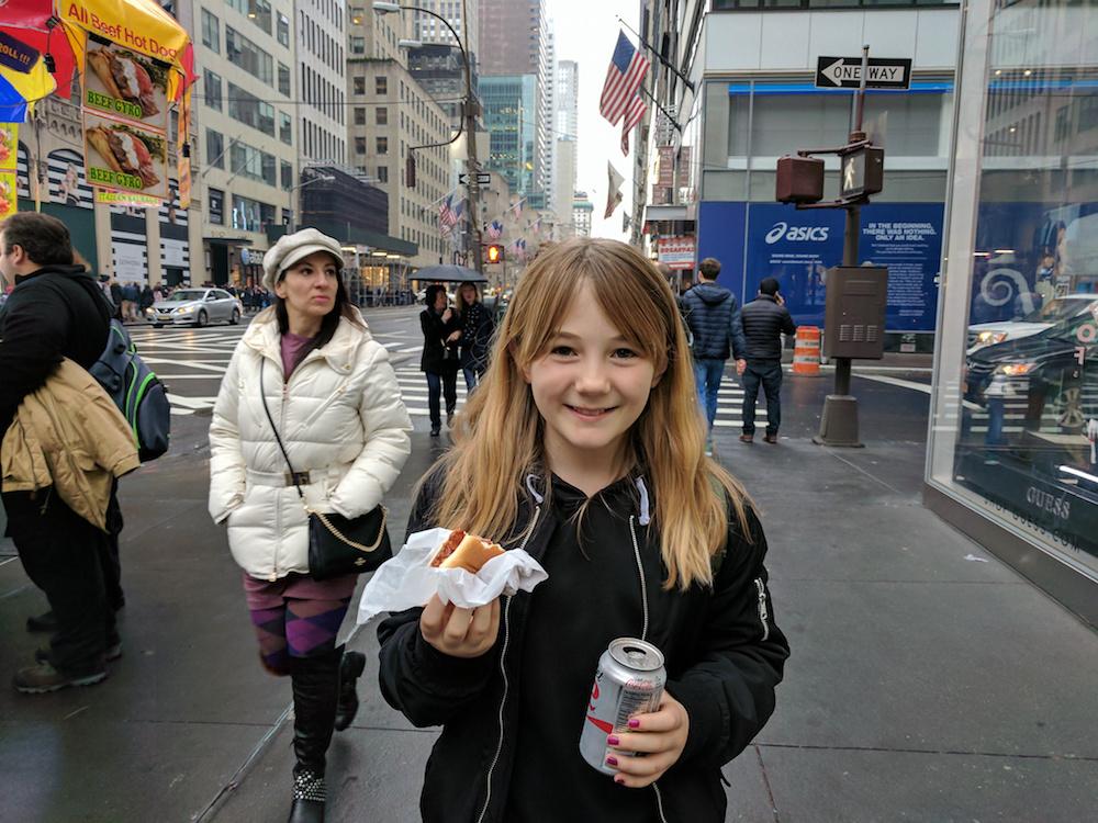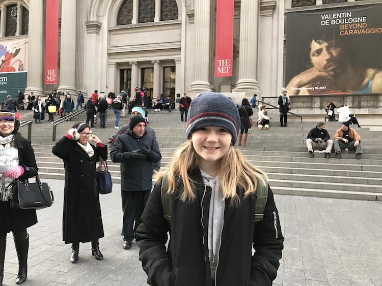 New York is one of our favourite places to visit, and we’ve not been back since Flea was eight. Flights were booked and a week before Christmas we were off! The trip was a complete surprise for Flea – she only found out when we got to the airport, as you can see below: